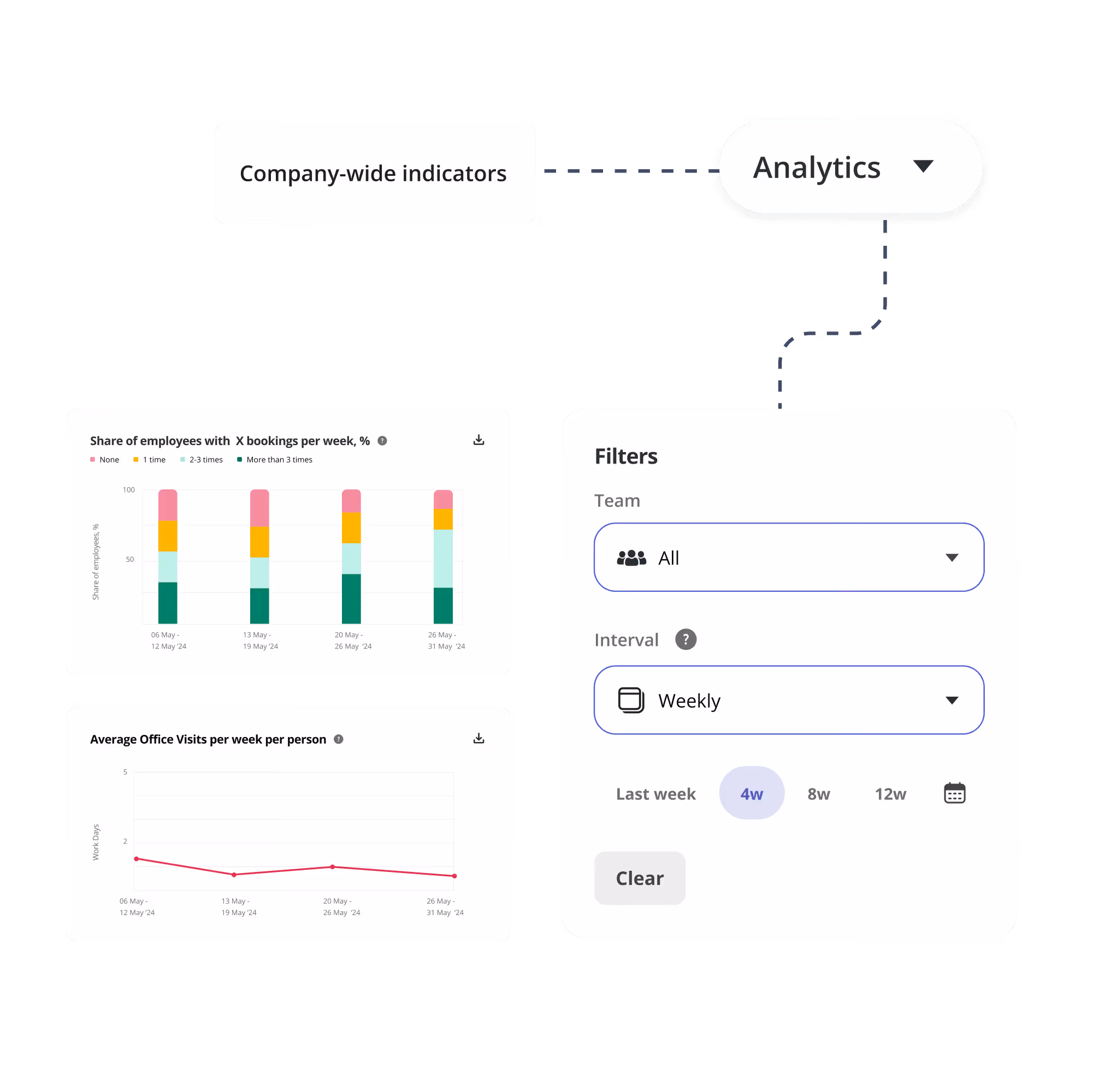 Hybride Mitarbeitende wollen öfter ins Büro kommen. Sie kommen aber nur, wenn ihre Teammitglieder auch dort sein werden. Um das transparent darzustellen, gibt euch das In-Office-Engagement-Modul von Seatti eine Plattform an die Hand, um das Planen gemeinsamer Office Tage zu erleichtern.